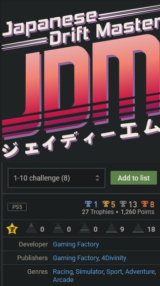 4 von mir. Das schwerste sind die Goldmomente, wobei es hierbei ja schon Tipps gibt, welche einfacher sind. Die Regelmäßigkeitstrophäe ist je nach gewählter Etappe unmöglich zu schaffen, aber die im Leitfaden genannte Strecke ist echt einfach dafür. Ansonsten ist das Game selbst mit Controller (hab leider grad keinen passenden Tisch für mein G29) gut machbar, auch da man die KI auf ganz leicht stellen kann. -