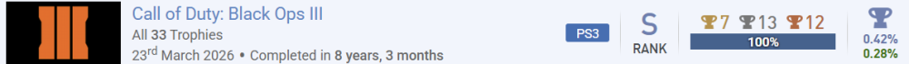 Ich vergebe eine 3. Das Spiel selbst ist nicht schwierig. Man muss aber echt auf Guides gucken, da manche Trophies schnell verpasst sind. -
