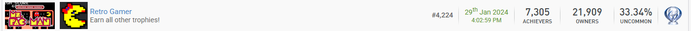 32 von insgesamt 76 Platin Die letzte ist mit Driver San Francisco jetzt auch schon wieder 2,5 Jahre her, puh... Fühlt sich noch gar nicht so lang an. Einige PS3-Spiele warten auch noch