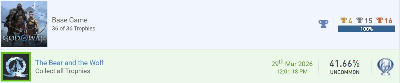 Melde mit "Ratchet & Clank: Rift Apart" die folgenden Foren-Trophäen... Komplettiere ein neues Spiel mit einer Komplettierungsrate von 25,00 - 74,99 %. Das Spiel hat auf psnprofiles eine Komplettierungsrate von 52,93%: Komplettiere ein neues oder Backlog-Spiel, das auf Trophies.de eine durchschnittliche Spielspaß-Bewertung von mindestens 8,5 hat, und bewerte danach ebenfalls den Spielspaß. Vor meiner Bewertung war die Spielspaßbewertung bereits bei 8,5, weswegen sich das Spiel für diese Forentrophäe eignet. Meine Bewertung findet man hier. Komplettiere ein neues Spiel mit einer Spielzeit von 5,00 - 24,99 Stunden. Ein letztes Mal nehmen wir diese Forentrophäe mit, das Spiel wurde bei uns mit etwas über 18 Stunden im Durchschnitt bewertet, wie oben zu sehen, und ich hab laut PS5-Zeitanzeige ca. 17 gebraucht.