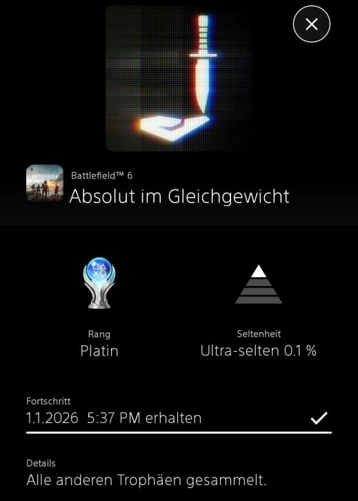 Das neue Jahr wollte ich auch direkt mit einer Platin beginnen - dafür hatte ich bereits Battlefield 6 vorbereitet. 😁 -