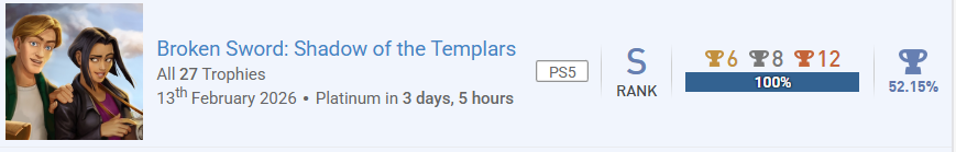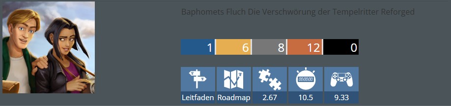 So, nach einigen technischen Schwierigkeiten .. habe ich mich jetzt auch noch verlaufen, na toll. Fertigmeldung: Melde dich bei diesem Event an. Broken Sword: Shadow of the Templars / Baphomets Fluch Die Verschwörung der Tempelritter Komplettiere ein neues Spiel aus der Liste eines anderen Teilnehmenden. @BloodyAngelCherr hat es auch https://psnprofiles.com/BloodyAngelCherr?search=broken Komplettiere ein neues Spiel mit einer Spielzeit von 5,00 - 24,99 Stunden.