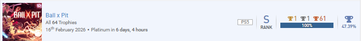 Das ging schneller als gedacht - Abschluss Ball x Pit (PS5) Die Trophäe "It`s bean emotional" stammt aus dem Spiel Overcooked!All you can eat! (PS5) Es gibt in unseren Forum insgesamt 3 vollständige Bewertungen - hier ist der Mittelwert zusammen gefasst: Schwierigkeit 3/10 Zeitaufwand 33,6666h Spielspaß 9,3/10 Im Spiel Ball x Pit fährt man mit einen riesigen Aufzug in eine Grube bzw. Abgrund um dort nach Schätzen zu suchen. 2x der Name Ballbylon ist ein direktes Wortspiel und eine Anlehnung an das antike Babylon. Ball x Pit ist laut psnprofiles ein Arcade-Spiel, laut playstationtrophies ist dieses Genre nicht unter den Top5 (ich wüsste auch kein Spiel welches ich unter den Genre "Arcade" abgeschlossen habe) Ich glaube das sollte erstmal alles sein. Viel Spaß beim Prüfen :-D
