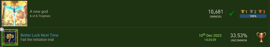 Hallo zusammen, hätte jemand intresse, oder bräuchte jemand noch die Trophy: (Verschnaufpause)? falls jemand intresse hat oder helfen kann. Wäre ich sehr dankbar. Bitte bei bedarf melden. Gruß Dante -