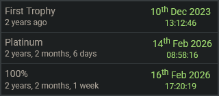 Bewertet den Zeitaufwand der Platin-Trophäe