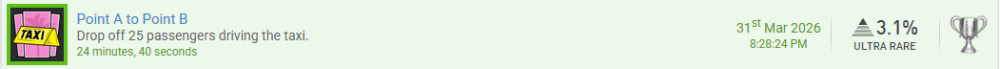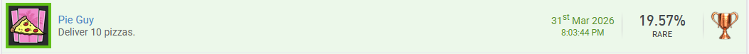 Wie immer, alles auf den letzten Drücker Hatte im März einfach kaum Zeit zum Zocken und nachdem ich jetzt endlich mal frei habe, die Gunst der Stunde gleich genutzt... Ich meine... oh, da habe ich mich wohl länger in den Nebelklippen des Irrwegs verlaufen Zwei Trophäen hatte ich ja schon erspielt und hier sind gleich nochmal zwei weitere: 2x Komplettiere ein neues DLC. Aus dem Spiel "Frobisher Says" und damit sogar endlich auf 100% gebracht. Der Zeitaufwand für das Hauptspiel liegt laut unserem Forum unter 5h. Das ist zwar für N2 egal, aber die P3 wäre so noch drin gewesen... Zählt aber nur für über 5h-Spiele oder @Vanyar1 ? Vermutlich könnte man die ein oder andere Trophäe noch für anderes benutzen, allerdings mache ich jetzt lieber schnell Nachdem ich endlich aus den Nebelklippen raus bin, kann ich nach GTA 3 ja gleich mit GTA VC und GTA SA weitermachen Habe ich zwar eigentlich schon, aber es gibt ja noch die Definitive Editions... Damit kann man immer gut die Camp-Trophäen erspielen. Für mehr war heute leider keine Zeit mehr. Erspiele eine Trophäe, deren Name oder Bild etwas mit Essen oder Tieren zu tun hat. Aus GTA VC Definitive Edition. Pizza schmeckt immer allen Erspiele eine Trophäe, deren Name oder Bild etwas mit Heilung, Medizin, Regeneration oder ähnlichem zu tun hat. Wenn man sich überfressen hat, ist auch die Notfallversorgung nicht weit Erspiele eine Trophäe, deren Name oder Bild etwas mit Herstellung, Bauen, Reparatur oder Verbesserung zu tun hat. Hier musste ich einen kurzen Abstecher nach San Andreas machen, nachdem es in VC keine passende Trophäe gab... Zumindest nicht auf die Schnelle. Aber wo ich was reparieren lasse, ist ja egal Erspiele eine Trophäe, deren Name oder Bild etwas mit Heimlichkeit, Verteidigung, Schutz oder Vorsicht zu tun hat. Oder auf Deutsch "Rechtsbeistand". Verteidigung/Schutz ist also gegeben. Auch auf einer Insel muss das Gesetz eingehalten werden Erspiele eine Trophäe, deren Name oder Bild etwas mit Transport, Lagerung, Optimierung oder ähnlichem zu tun hat. Die Gebiete hier sind groß, da muss man sich schon mal mit dem Taxi von A nach B transportieren lassen Das war es dann für März. Im April wird es hoffentlich mehr