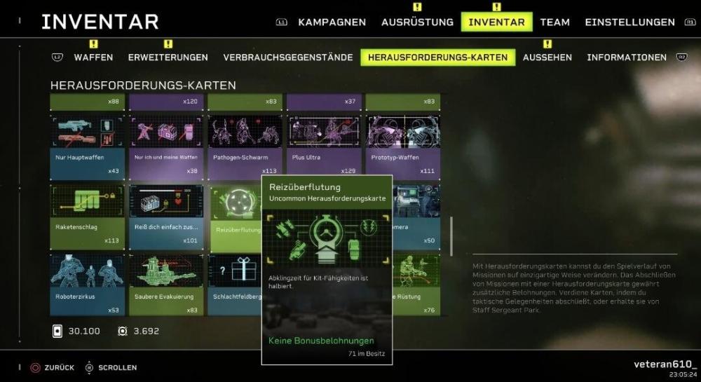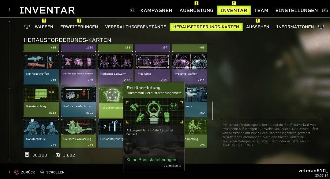 Platin am 23.11.2025 erhalten Ich habe erstmal auf dem Schwierigkeitsgrad "Standard" angefangen und alle Sammelobjekte mitgenommen. Eine gute Übersicht mit alle 39x Informationen ist hier zu finden: https://www.youtube.com/watch?v=Da-BRZkRO18&list=PLJRak3ahg9v7U2hJx-DwJBB29re5EdB85&index=9 und https://www.youtube.com/watch?v=0fb39vruc6Y&list=PLJRak3ahg9v7U2hJx-DwJBB29re5EdB85&index=10 (Pathogen DLC) Beim Händler kann man sich unendlich viele Herausforderungskarten kaufen, da diese kostenlos erhältlich sind. Die Charakter- und Waffenmaximierungen habe ich hauptsächlich in den Hordenwellen im ersten Level von Welle 10-20 gemacht. Wenn man dann auch noch eine EXP-Herausforderungskarte aktiviert, dann knallen die Erfahrungspunkte nach Missionsabschluss ordentlich rein. Die Modifikationen für die verschiedenen Klassen sind enorm wichtig und diese bekommt man zufällig nach Missionsabschluss oder in den versteckten orangenen Kisten. Wenn man in der Nähe von so einer Kiste ist, dann macht sich ein regelmäßiges Geräusch bemerkbar. Dadurch kann man in jedem Level diese finden. Für den Schwierigkeitsgrad "Extrem" und "Verrückt" habe ich einen Zerstörer-Build benutzt, welcher zeitlich unbegrenzt viele Mikroraketen abfeuern kann. Das erleichtert die Gesamtsituation erheblich, aber macht die Durchgänge trotzdem nicht zu einem Spaziergang. In jeder Mission empfehle ich ganz klar und deutlich die Herausforderungskarte "Reizüberflutung", wodurch die Abklingzeiten der Fähigkeiten halbiert werden. Meine Zusammenstellung sah am Ende wie folgt aus: Die Alien-Bosse waren kein großes Problem, da man diese mit den "Mikroraketen" gut auf Abstand halten kann und im Notfall auch mit "Druckwelle" von sich wegstößt. Nerviger waren eher die Alien-Spucker, welche durch ihren vergifteten Bodenangriff viel Schaden bei einem anrichten und den Spieler aus seiner Verteidigungsposition herauslocken. Diese gilt es sofort und als erstes zu töten. Auf die Alien-Jäger sollte man auch immer ein Auge haben, da diese sich immer in irgendwelchen Ecken verstecken und bei Unachtsamkeit zum Schleichangriff stürmen. Wenn man einen von denen hören sollte, dann kann man einfach in die Ecken schießen. Dadurch kann man die Viecher schnell ausschalten, ohne von einem Schleichangriff getroffen zu werden. Mit seinem Medikit sollte man sparsam umgehen, da nicht viele davon in den Missionen erscheinen. Ich hab erst ab 800 HP oder weniger diesen verwendet. Leider kann man immer nur 1x Medikit tragen. Die Gadgets aus den Kisten können auch beim Verteidigen helfen. Diese ebenfalls zusätzlich benutzen. Aus diesem Grund bewerte ich mit einer 5/10 Bei Fragen könnt ihr mich gerne jederzeit anschreiben oder adden: veteran610_ -