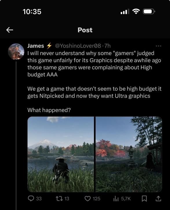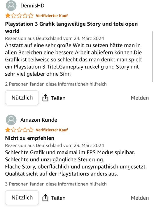 sieht ok aus aber ich bin ja eh so jemand der halt 0 Ansprüche an Grafik hat finde es eh nicht so gut dass videospiel grafik sich immer mehr auf fotorealismus entwickelt da ich als jemand der selbst live action serien und filme nicht mag dann auch bei videospielen damit konfrontiert werde find das auch derbe ǔbertrieben ich erinnere mich dunkel an ps3 spiele und die waren definitiv nicht auf rotr niveau aber klar leider waren die erwartungen zu hoch da es ja ein playstation studios game ist vorallem verglichen mit gowr oder horizon 2 oder last of us da hätte man ein oder zwei jahre mehr entwicklungszeit reinstecken müssen