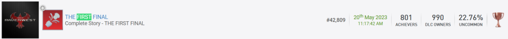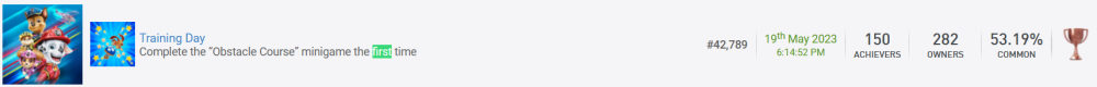 Resogun B2 - Komplettiere ein Spiel mit einer Komplettierungsrate von 05,01% - 24,99%. → 10,01% B5 - Komplettiere ein Spiel mit einer Schwierigkeit von 4,00 - 7,99. → 5,34 B9 - Komplettiere ein Spiel, was vor 2020 gestartet und bis Eventbeginn nicht beendet wurde. → V10 - Schaffe einen Spieldurchgang auf einem schweren Schwierigkeitsgrad oder NG+ 2x → Es wurden mehrere Durchläufe gemacht, erkenntlich auch an den Timestamps, daher möchte ich die Trophäe 2x einreichen. Anmerkung: Um Erfahren und Veteran freizuschalten, muss man zuerst Anfänger abschließen bzw im Fall von Veteran "Erfahren". -