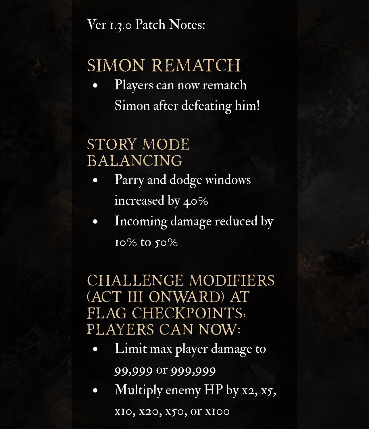 https://www.youtube.com/watch?v=C_Gp_ZHwaUQ Ein Dankeschön Update wurde heute veröffentlicht und es beinhaltet ein neues Spielbares Level und 4 bekannte Gegner: Simon/Clea/Dualisten und der Lampen Meister, in extrem harter Schwierigkeit, zu finden im Endlosen Turm. Das Update kommt mit neuen Klamotten, Haaren, Pictos und Waffen da her, neue Gegner, neue Chromatische Gegner und Bug fixes sowie einen richtig coolen Fotomodus! ✨⭐️✨ Desweiteren ist der Alte Schlüssel nicht mehr nur im Prolog zu erhalten sondern auch später im Endgame, was die Trophäe Wegfinder: „Erhalte alle Expeditions Journale“, nicht mehr verpassbar macht. -