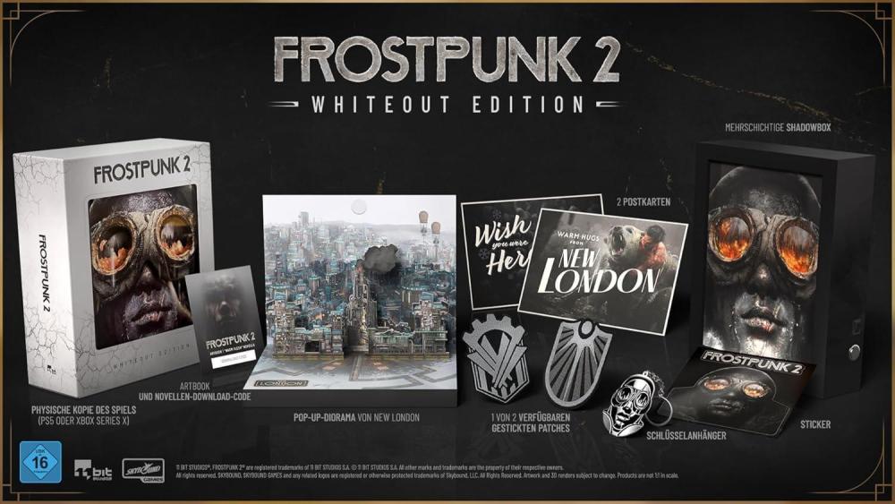 Das Survival-Strategiespiel Frostpunk 2 erscheint im September für Konsolen Seit September 2024 ist das Survival-Strategiespiel Frostpunk 2 für PC erhältlich, nun haben die Verantwortlichen bei 11 bit studios kürzlich den Erscheinungstermin für Konsolen bekannt gegeben. Demnach erscheint der Titel am 18. September 2025 für PlayStation 5 und Xbox Series. Frostpunk 2 spielt in einer postapokalyptischen, verschneiten Welt, mehrere Jahrzehnte nach dem Erstling. Ihr schlüpft in die Rolle eines Oberhaupts und müsst eure Stadt durch die Katastrophen führen, die auf euch warten. Dazu heißt es: »Baue große Stadtbezirke auf, kümmere dich um ihre endlosen Bedürfnisse und Anforderungen und bediene die Interessen aller Fraktionen, die deine Metropole bevölkern. Die Bedürfnisse deiner Stadt werden immer größer und die Macht der Fraktionen nimmt immer weiter zu – und es liegt an dir, die Gesellschaft in eine ungewisse Zukunft zu führen.« Auch in Frostpunk 2 ist Ressourcen-Managment das A und O. Frostpunk 2 erscheint für Konsolen in der Icebreaker Edition (49,99€) und in der Whiteout Edition (99,99€), die beide bereits bei Amazon vorbestellt weren können. Die Inhalte sehen wie folgt aus: Icebreaker Edition Vollständiges Spiel auf Disk Pop-up-Diorama von New London Digitale Novelle »Warm Flesh« Ein digitales Artbook mit Einblicken hinter die Kulissen der Entstehung der Spielwelt Whiteout Edition Inhalt der Icebreaker Edition Mehrschichtige Box mit integrierter LED-Beleuchtung und Keyarts Deluxe-Edition-Upgrade, das Zugriff auf die drei kommenden herunterladbaren Inhalte gewährt Deluxe-Schlüsselanhänger aus Metall und Emaille Zwei New-London-Postkarten Frostpunk-Aufkleber Einer von zwei möglichen gestickten Fraktionsaufnähern: entweder die Technokraten oder die Eisblüter Trailer