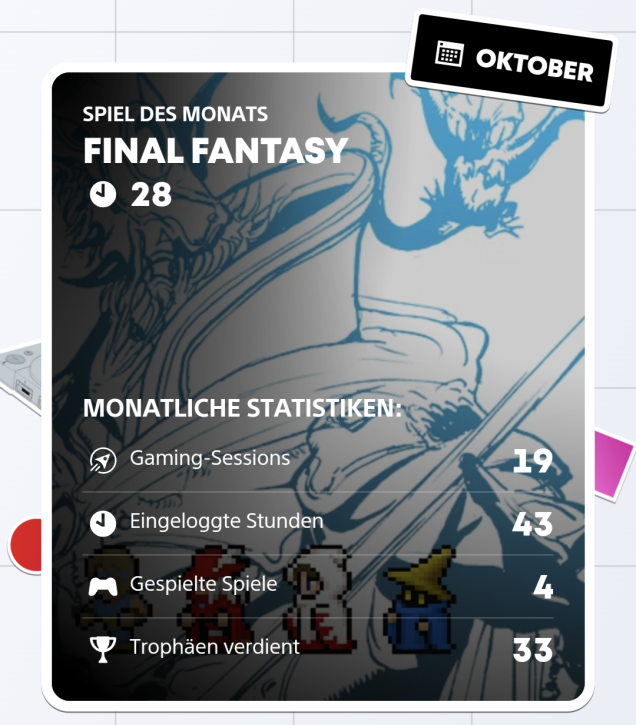 Ja, das stimmt, mein Jahr war sehr Final Fantasy geprägt. So wie es scheint wird es dieses Jahr wohl nicht anders sein, da ich das Final Fantasy Pixel Remaster noch durchspielen wollte. Das sind noch 5 Spiele und momentan bin ich noch an Final Fantasy Type-0 HD dran. Mal sehen, was da noch so zwischen kommt. -