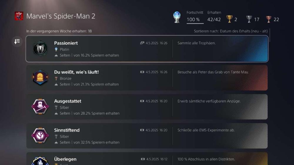 8. Richtig toll, dass hier noch jemand Deadpool nachgeholt bzw. platiniert hat. Ein cooles Spiel und eigentlich ein Muss für jeden Marvel-Fan abseits von den bekannten Games wie Spider-Man.