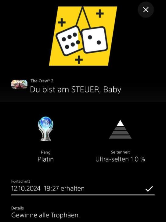 Ich hatte mir zwar geschworen, niemals ein 1-Euro-Game zu platinieren, aber das hier ist natürlich ein anderer Fall. 😁 Eigentlich wollte ich "diesen alten Schinken" trotz dieses Deals im PS Store gar nicht mehr anrühren. Zum Glück habe ich mich anders entschieden, denn The Crew 2 sieht hammermäßig aus und liefert auch ab, wenn es um die Performance geht - und das bei so einer riesigen Map. Für ein PS4-Spiel von 2018 (gespielt auf der PS5) ein richtig cooles Rennspiel, welches meiner Meinung nach sogar besser ist als sein Nachfolger. -
