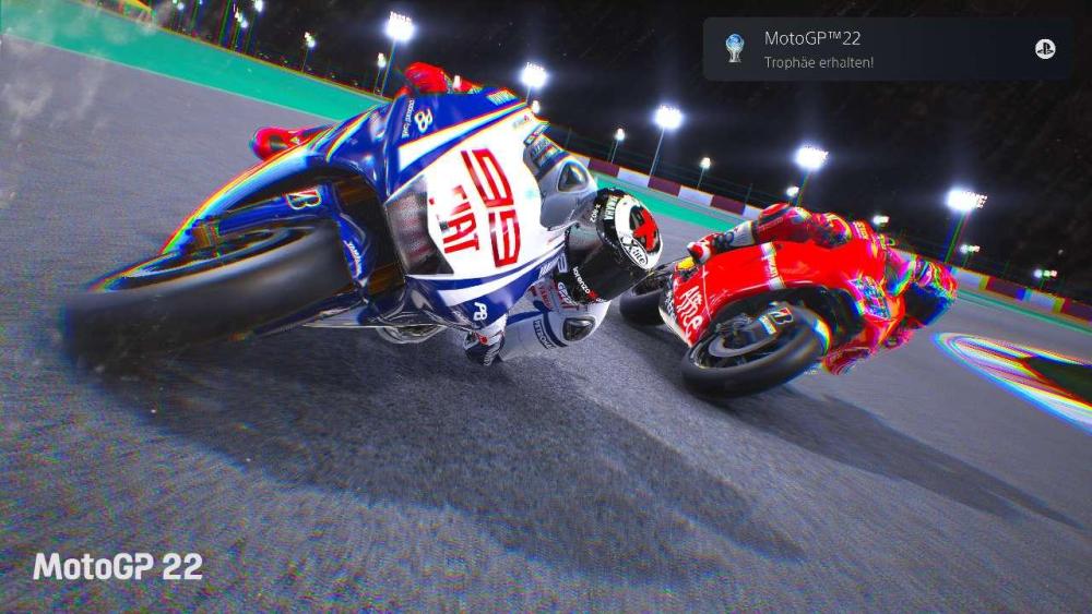 Also eine 1 oder 2 sind meines Erachtens irgendwelche 1-Euro-Platins, aber garantiert nicht MotoGP 22. Einige Herausforderungen im NINE-Modus haben es am Ende in sich, das ging zumindest bei mir nicht ohne Dutzende Versuche. Bei Rennen im Regen fährt man fast ohne Grip, während die NPC-Fahrer auf trockenen Asphalt eingestellt zu sein scheinen. Ohne die Rewind/Rückspulfunktion eine klare 10, mit Rewind konnte man sich dagegen nach jedem Sturz einige Augenblicke zurücksetzen lassen und die entsprechende Stelle erneut versuchen, evtl. sogar mehrfach. Online ohne Absprache einfach 3-4h in einer vollen Lobby laufen lassen und man hat die Trophäen. Zwischen den Online-Rennen muss man nichts drücken, sicherheitshalber habe ich jedoch alle paar Minuten die Sticks des Controllers bewegt (beim Serie gucken 😅). Von mir eine 5, da es auch mein erstes Motorradspiel war. Vielleicht kam es mir deshalb schwerer vor, aber wie anfangs gesagt ist es definitiv keine 1 oder 2. -