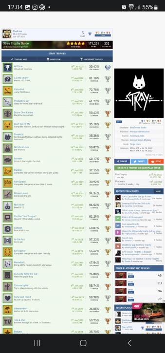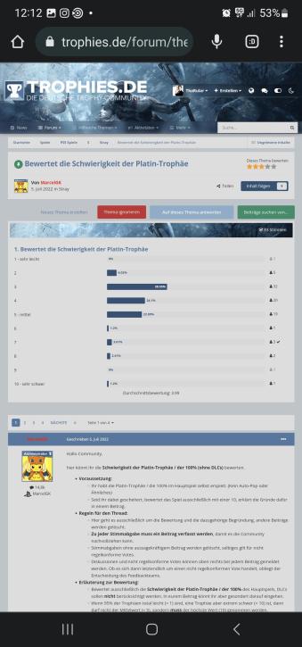 Fertigmeldung Nr. 20: Das von mir platinierte Spiel Stray (PS5) hat heute auf dieser Seite eine Schwierigkeit von 3,99. Als ich die Platin gemacht habe, war dies bei 4,xx. Leider habe ich davon keinen Screenshot mehr. Sonst hätte es für B5 gezählt. -