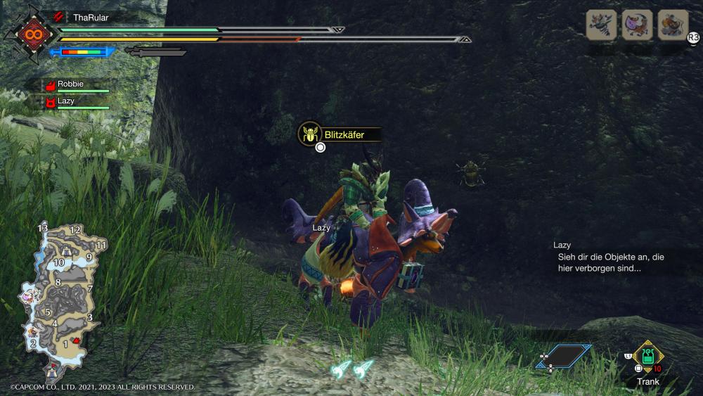 Fertigmeldung Nr. 5: Ich habe das Tier Insekt in dem Spiel Monster Hunter Rise (PS5) entdeckt. Es handelt sich um einen Blitzkäfer. -