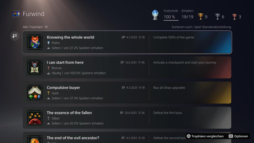 Fertigmeldung Nr. 10: Ich habe das Spiel Furwind (PS4) platiniert. Das Spiel wurde von Boomfire Games aus Spanien entwickelt! -