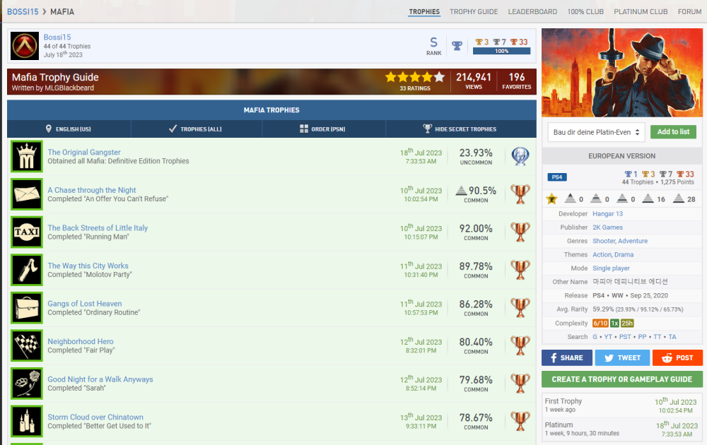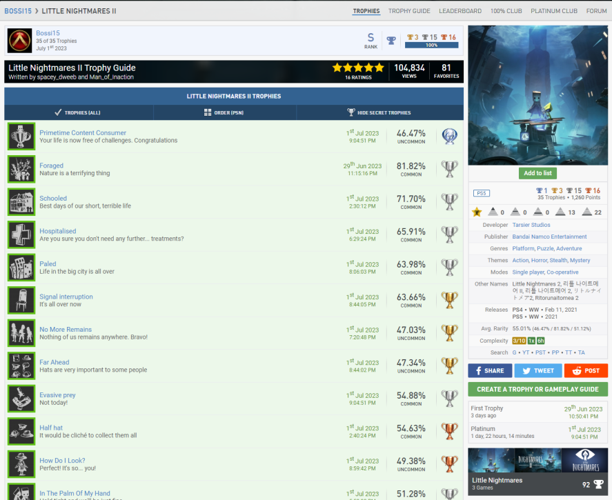 Bewertet den Zeitaufwand der Platin-Trophäe