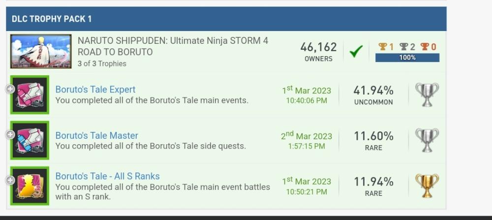 Paar mehr Trophys die fertig gemeldet werden möchten. V1 Naruto Storm 4 E11 Erledigt durch Trophäen in Block E + Block S + Block V S6 Cuphead (Regenbogen) S7 Cuphead (Nacht, Mond, Sterne) S11 Naruto Storm 4 (Ryo-Millionär) S18 Naruto Storm 4 (Junger Naruto rechts = Vergangenheit, Hokage Naruto links = Gegenwart, Boruto Mitte = Zukunft) S19 Cuphead (über 1000 Tode lul) Cuphead Fertigmeldung von S21 dem Insekt -