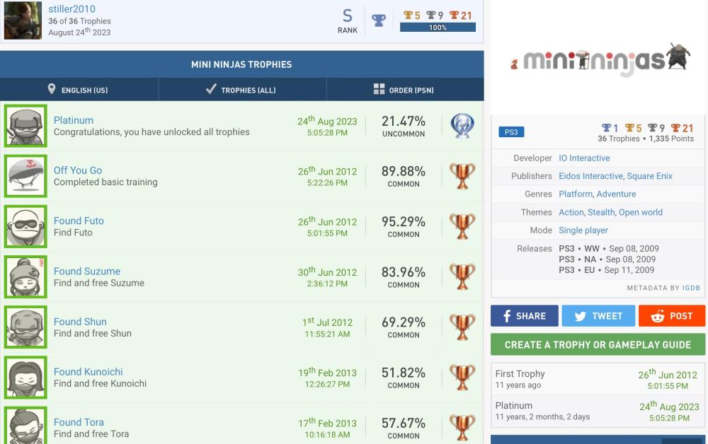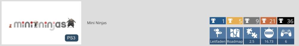 Sooo, zum Start des Endspurts hier die FERTIGMELDUNG #25 Kleiner persönlicher Meilenstein für mich und ein wahres Hochgefühl, etwas (hier "Mini Ninjas") nach über 10 Jahren auf der PS3 endlich abgeschlossen zu haben Damit möchte ich die folgenden Foren-Trophäen fertigmelden: B2 Cake my Day → zum 2. Mal B4 Easy Road → zum 5. und letzten Mal B9 Historischer Bau → zum 1. Mal V10 Nochmal? Gern! → zum 1. Mal, durch den Abschluss des Spiels auf dem schweren Schwierigkeitsgrad, siehe C1 Bewertet → zum 22. Mal (siehe Schwierigkeit | Zeitaufwand | Spielspaß) C4 Ich mach das tatsächlich → zum 1. Mal, da mir @tadini das Spiel hier vorgeschlagen hat (sie erhält dafür dann zum letzten Mal die C3) - danke für die Backlog-Motivation! Mit diesen Fertigmeldungen sollten sich nun auch noch zwei weitere Blöcke vervollständigt haben, deswegen möchte ich auch noch die folgende Foren-Trophäe fertigmelden: E14 Dr. Block → einmalig, durch die Blöcke S, N, V und C Viele Grüße und morgen allen einen schönen Freutag! -