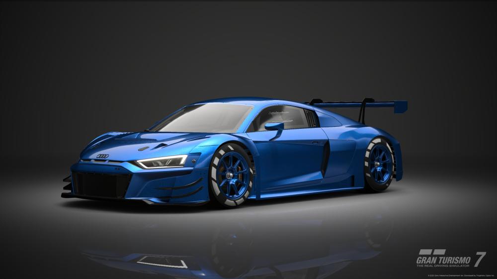 Trophäenmeldung #3: Anmelden möchte ich hier einen Audi R8 LMS, von mir selbst im Spiel "Gran Turismo 7" in Blau lackiert -