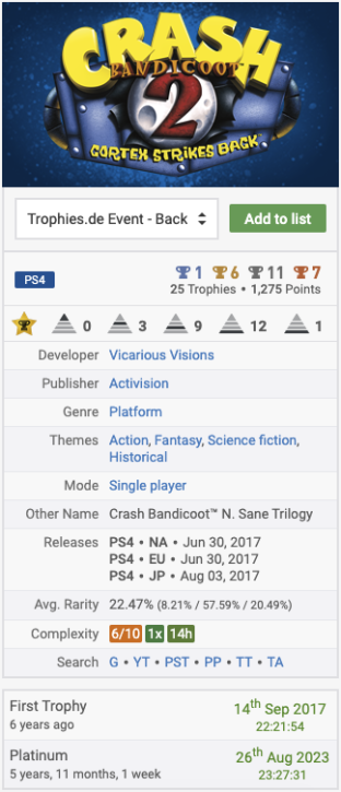 Hier fehlt eine Bewertung zu: https://www.trophies.de/forum/thema/177928-bewertet-den-zeitaufwand-der-platin-trophäe/ Hier auch: https://www.trophies.de/forum/thema/166746-bewertet-den-zeitaufwand-der-platin-trophäe/ -