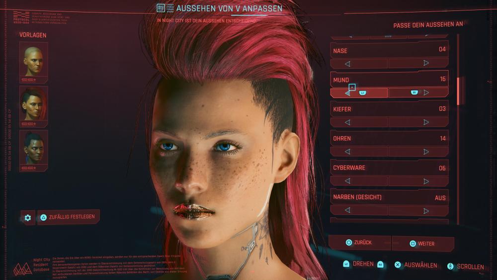 Ich fang nochmal mit einem frischen Charakter an, sozusagen ist Vs Zwillingsschwester auf Besuch in Night City. Sie soll noch taffer als ihre Schwester sein.