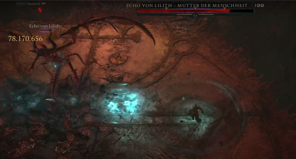 Habe mit 9 gestimmt. die Schwierigkeit hängt eigentlich nur davon ab, wie gut man gegen Lilith aufgestellt ist. Das wiederum variiert sehr stark (wie man an den deutlich unterschiedlichen Bewertungen hier sieht) und hängt vor allem von zwei Faktoren ab: gewählte Klasse Zustand des Spiels/der Klasse (welcher Patch) Ich habe mit Release des Spiels (Pre-Season) eine Zauberin auf 100 gespielt und es mit ihr versucht. Null Chance, da bekanntermaßen die Zauberer zu Release einfach extrem schlecht gebalanced waren. Das war schon extrem frustrierend, vor allem da andere Klassen wie der Necro sie relativ einfach umhauen konnten. Mit Season 1 habe ich dann einen Totenbeschwörer (Knochenspeer) gespielt und es mit ihm probiert. Trotz extrem gutem Build und Gear habe ich dann aber auch mit dem Necro hunderte Versuche gebraucht. Grund dafür ist vor allem der leider immer noch recht verbuggte Kampf an sich. Der vermeintliche Vorteil des hohen Schadens des Necros hat sich im Nachhinein als Nachteil entpuppt, da man dadurch so gut wie jeden Try in den "Infinite Waves Bug" geraten ist. Dabei verbuggt sie, wenn man sie in der ersten Add-Phase (2 adds) auf unter 50% gebracht hat und steigt ab da in Endlosschleife auf und ab und spawnt Spikes-Wellen. Das ist mit dem Necro so gut wie jedes mal der Fall gewesen. Um das rauszufinden habe ich alleine schon fast eine Woche Tries vergeudet, ohne dass ich überhaupt Phase 2 gesehen habe. Die Lösung war am Ende ein Schadensstop, sobald sie die Adds holt. Dadurch hat der Kampf deutlich länger als nötig gedauert, es war aber möglich in Phase 2 zu kommen. Phase 2 wiederum fand ich dann spielerisch deutlich schwerer, besonders durch die Blutpfützen und die Geister, die mich onehitten. In Phase 2 kann man dann tatsächlich doch noch von hohem Schaden profitieren. Wenn man es schafft, ihr mit dem ersten Barber Procc (darf nicht länger als 3s sein) mehr als die häfte des ersten Balkens abzuziehen, geht sie in die nächste Phase ohne Blutpfützen zu spawnen. Bei anhaltend hohem Schaden macht sie das bis zum Ende auch nicht mehr. Hier ein paar Tipps aus meiner leidlichen Erfahrung: in Phase 1 darf sie in der ersten Add-Phase nicht unter 50% kommen, sonst "infinite waves bug" in Phase 2 sollte man ihr innerhalb der ersten 3 Sekunden ca. 70Mio Schaden zufügen (bzw. bis kurz vor der 25% Marke). Dann geht sie direkt dazu über Teile der Plattform abzubrechen, OHNE vorher Blutpfützen zu spawnen (siehe Bild, der Screenshot ist aus meinem Solo Kill) Herz des Barbiers mit idealerweise 3s (definitiv nicht mehr) benutzen. das war mein Gamechanger Vielleicht hilft es ja jemandem. Am Ende habe ich nach endlosen Tagen und Tries Lilith je einmal Solo und einmal in der Gruppe gekillt (was ich deutlich schwerer fand als alleine) und bin auch echt froh es hinter mir zu haben