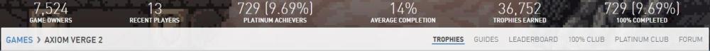 Ich habe das Spiel "Axiom Verge 2 (PS4)" abgeschlossen und damit folgende Foren-Trophäen erspielen können: Komplettiere ein Spiel mit einer Komplettierungsrate von 05,01% - 24,99%. Komplettiere ein Spiel mit einer Schwierigkeit von 4,00 - 7,99. Komplettiere einen Indie-Titel. Bewerte Spaß, Dauer und Schwierigkeit eines im Event komplettierten Spiels. Komplettiere drei Spiele mit gleichem Genre. Zudem habe ich die folgende Foren-Trophäe erreichen können: Komplettiere ein Spiel des Monats. -