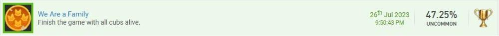 Von mir gibt es eine 5. Die Story war von der ersten Sekunde an festgelegt und man wusste direkt, die Entwickler wollen auf Biegen und Brechen dem Spieler eine Träne herausdrücken. Selbstverständlich hat das dann am Ende nicht funktioniert. Das Gameplay war ebenso unspektakulär wie die Story und bezog sich auf Essen sammeln, Fährte aufnehmen, nach wenigen Minuten wieder in den Bau rennen und hoffen nicht beim Spielen einzuschlafen. Optisch ist das Spiel allerdings recht ansprechend und auch akustisch ging es mir nicht auf die Nerven. Das Spiel hat leider nichts, was es besonders macht und wird somit leider ein Spiel sein, welches man in Windeseile vergessen hat. -