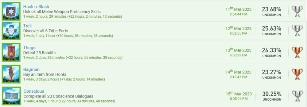 BlueDevls Reise zur Foren-Platin 2023BlueDevl antwortete auf BlueDevl's Thema in: Bau dir deine eigene Platin 2023 Ich möchte folgende Foren-Trophäen als abgeschlossen melden: Erspiele an fünf aufeinanderfolgenden Tagen mindestens eine Trophäe. Komplettiere ein Spiel des Monats. Mach einen Screenshot von einer noch nicht erkannten Person. Mach einen Screenshot von einem noch nicht erkannten Orte.