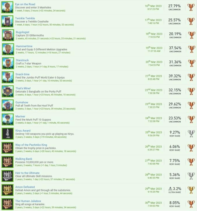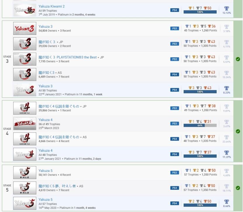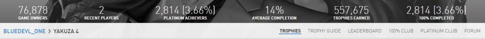 BlueDevls Reise zur Foren-Platin 2023BlueDevl antwortete auf BlueDevl's Thema in: Bau dir deine eigene Platin 2023 Ich habe das Spiel "Yakuza 4 (PS3)" abgeschlossen und damit folgende Foren-Trophäen erspielen können: Komplettiere ein Spiel mit einer Komplettierungsrate von 00,00% - 05,00%. Komplettiere ein Spiel mit einer Schwierigkeit von 4,00 - 7,99. Komplettiere ein Spiel, das zwischen Anfang 2020 und Ende 2021 gestartet und bis Eventbeginn nicht beendet wurde. Komplettiere ein Spiel aus einer Reihe in der du mindestens eine Platin/100% hast. Schaffe einen Spieldurchgang auf einem schweren Schwierigkeitsgrad oder NG+ Komplettiere einen Nischen-Titel. Bewerte Spaß, Dauer und Schwierigkeit eines im Event komplettierten Spiels. Komplettiere ein Spiel aus der Liste eines anderen Mitspielers. Bring uns zum Lachen. Gründe eine Familie. Zusätzlich konnte folgende Foren-Trophäe erspielt werden: Erspiele an 15 aufeinanderfolgenden Tagen mindestens eine Trophäe.