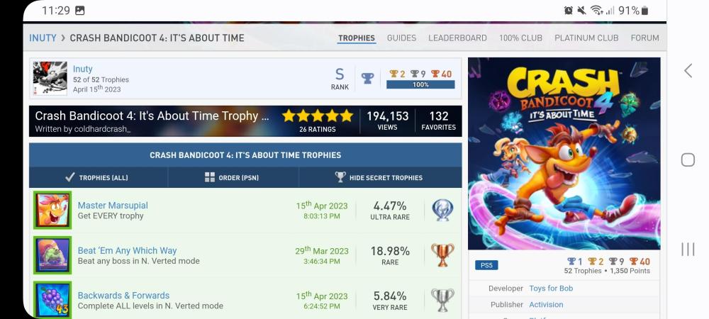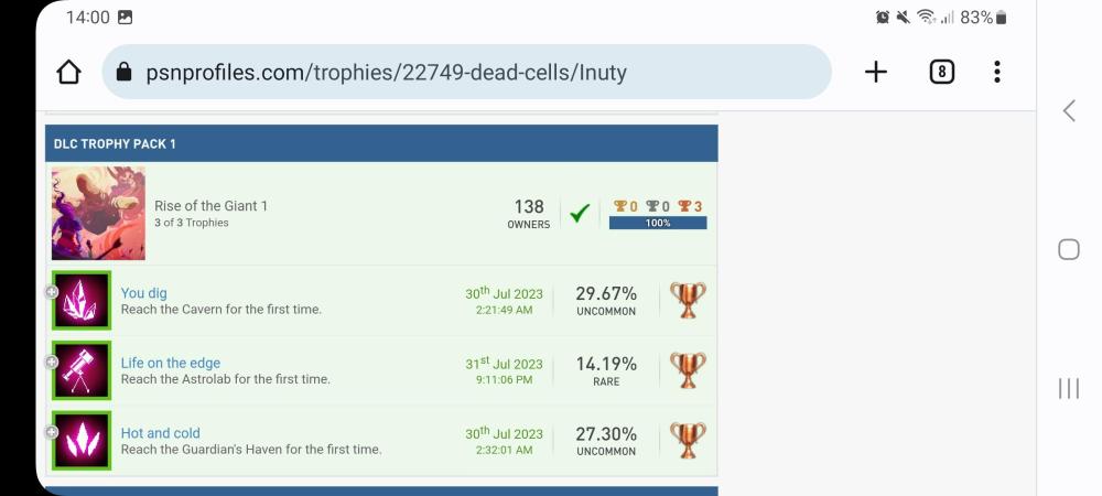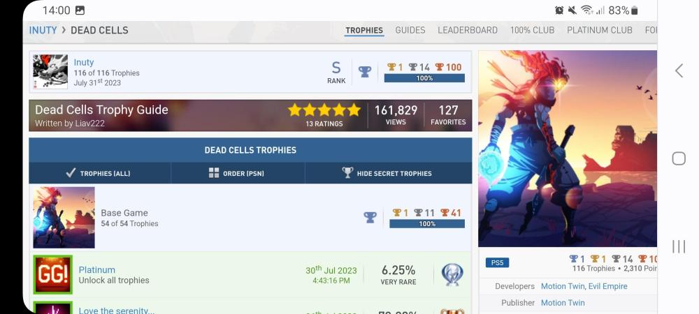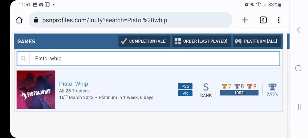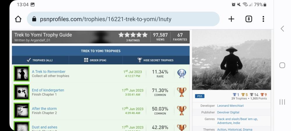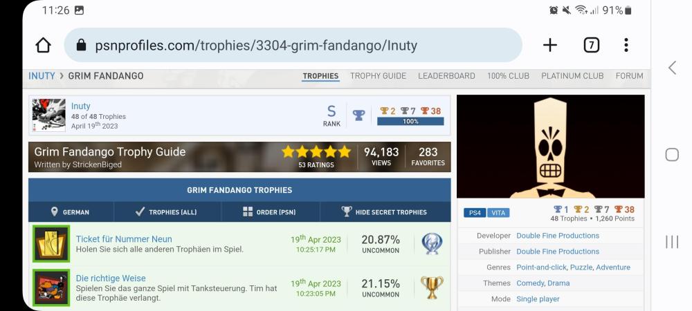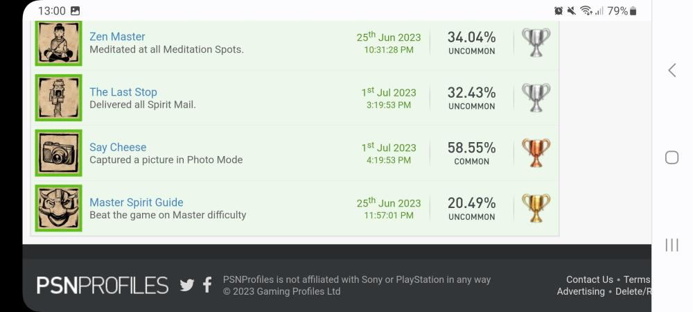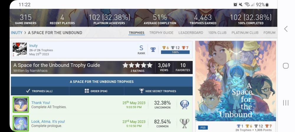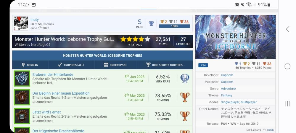 Hi ich bin @Inuty und das hier ist meine Reise zur Foren-Platin 2023! Mein PSN-Nick ist: Inuty Hier ist mein aktueller Punktestand: Inutys Punktetafel Meine aktuelle Komplettierungsrate beträgt: 87,68% (psnp) Meine Lieblingsgenres sind: Adventure Rollenspiele Indie Unpopulär dagegen ist folgendes Genre bei mir: Racing Folgende 3 Neue Spiele würde ich gern abschließen: Monster Hunter Iceborn Like a Dragon Ishin! The Legend of Heroes: Trails to Azure Folgende 3 Backlog Spiele würde ich gern abschließen: Trackmania Turbo Gravity Rush Beyond Two Souls Folgende 3 Koop-Titel würde ich gern abschließen: - Folgendes Abzeichen ist mein Ziel: Gold