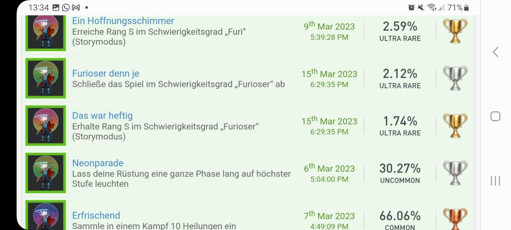 Monster Hunter Rise: Dead Cells: Dead Cells: Dead Cells: Final Fantasy 1 und Crisis Core: Need for Speed Heat und Unbound: Final Fantasy 1 und Crisis Core: 10.04: Monster Hunter Iceborn: Evolving Ecology 11.04: Monster Hunter Iceborn: Creatures of the Earth 12.04: Monster Hunter Iceborn: Insatiable Investigator 13.04: Crash Bandicoot 4: Tree Droppings 14.04: Creed Rise to Glory: Punisher 19.04: Grim Fandango: Oh Rusty Anchor 20.04: Ravenous Devils: Its not that rusty 21.04: Need for Speed Unbound: Untouchable 22.04: Ravenous Devils: Friedland Paw 23.04: Ravenous Devils: Ravenous Devils 28.05: Monster Hunter Iceborn: True Miniature Crown Collector 29.05: Life is Strange True Colours: Umbrella 30.05: Need for Speed Unbound: Style it out 31.05: Yurukill: Chapter 7 Unlocked 01.06: Yurukill: Puzzle Master 02.06: Yurukill: Yurukill: The Calumniation Games Completed 03.06: Neon White: Ace 04.06: Neon White: Cannonball 05.06: Monster Hunter Iceborn: Master of Masters 06.06: Neon White: Idiot 07.06: Neon White: Trippy 08.06: Life is Strange True Colours: Count me in 09.06: Neon White: Surprise! 10.06: Neon White: Violet 11.06: Neon White: Divine Intervention 05.07: Monster Hunter Rise: Great Helmet 06.07: Final Fantasy Crisis Core: Come and get it 07.07: Final Fantasy Crisis Core: Banora Treasures 08.07: Final Fantasy Crisis Core: Everyones Hero 09.07: Final Fantasy Crisis Core: Master Blender 10.07: Final Fantasy Crisis Core: Shinras Squats Champion 11.07: Final Fantasy Crisis Core: Overpowered 12.07: Final Fantasy Crisis Core: Limit Break Collector 13.07: Final Fantasy Crisis Core: Divine Rule Broken 14.07: Final Fantasy Crisis Core: DMW Master 15.07: Inscryption: Face to Face 16.07: Inscryption: Devils Play 17.07: Inscryption: Rank and File 18.07: Need for Speed Unbound: In the Zone 19.07: Inscryption: Taunting Challenge 24.07: Inscryption: Roar of Challenge 25.07: Inscryption: Skull Storm 26.07: Dead Cells: The fat and the furious 27.07: Dead Cells: The Dance 28.07: Dead Cells: Trapped Trapper 29.07: Dead Cells: Firefighter 30.07: Dead Cells: You Dig 31.07: Dead Cells: I still have 8 lives 01.08: Need for Speed Unbound: Flow Master 02.08: OlliOlli2: Twitted 03.08: OlliOlli2: Ready for RAD 04.08: Teenage Mutant Ninja Turtles Shredders Revenge: Like the old days! 05.08: OlliOlli2: Hit the Spot 06.08: Final Fantasy: Seasoned Hero 07.08: OlliOlli2: Spotless -