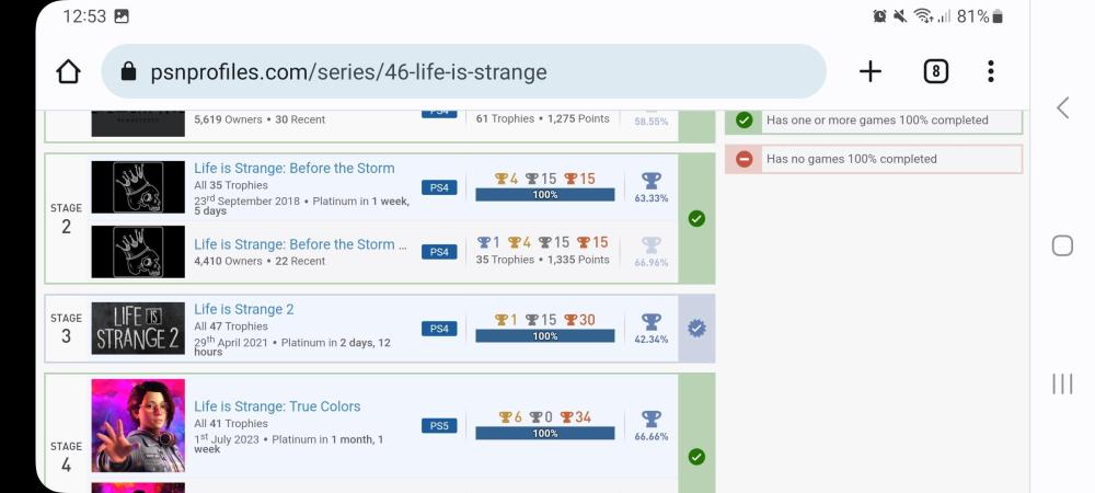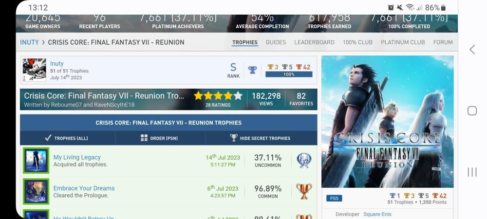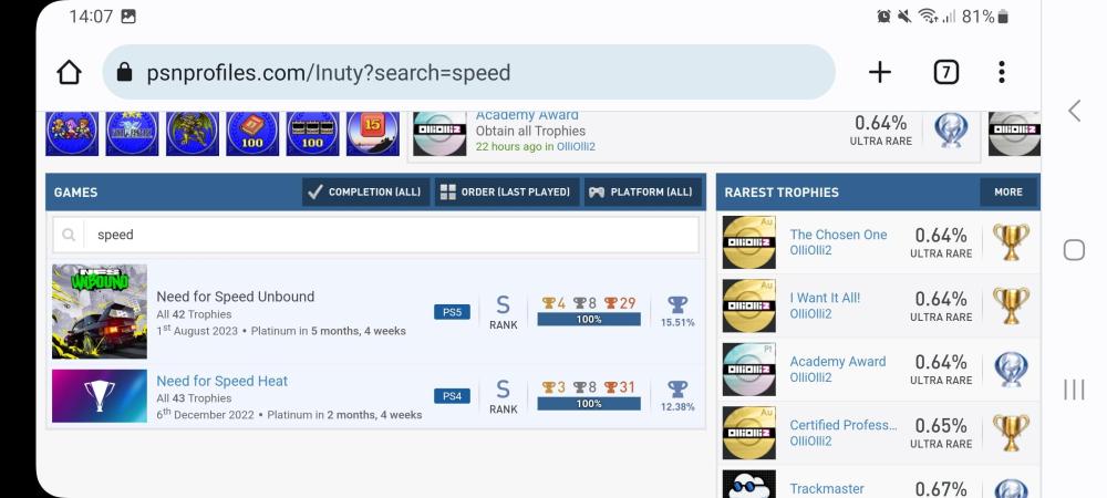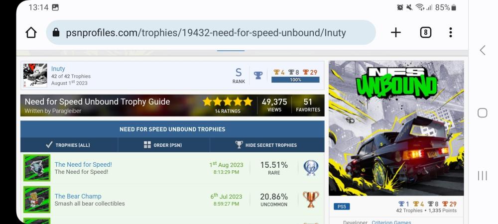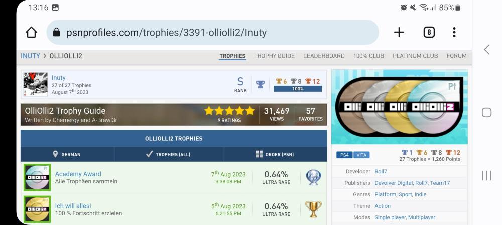 Letztes Update von mir. Mit den letzten Punkten + dem E6 Abzeichen, dass ich meine Komplementierungsrate bis Eventende verbessere sollte ich jetzt genug Punkte haben um meine Platin gebaut zu haben! Final Fantasy Crisis Core Reunion: Need for Speed Unbound: OlliOlli 2: Need for Speed Unbound: OlliOlli 2: OlliOlli 2: Die restlichen Fertigstellungen poste ich später. -