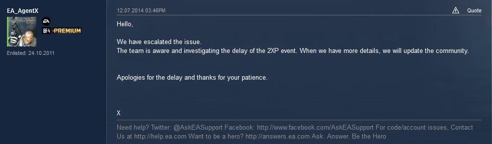 TheEnd Geschrieben 12. Juli 2014 Geschrieben 12. Juli 2014 Zum Thema Double XP: https://pbs.twimg.com/media/BsWvUTKCIAAFayK.jpg:large So langsam ist das Versagen von EA bezüglich BF4 zum Running Gag geworden.