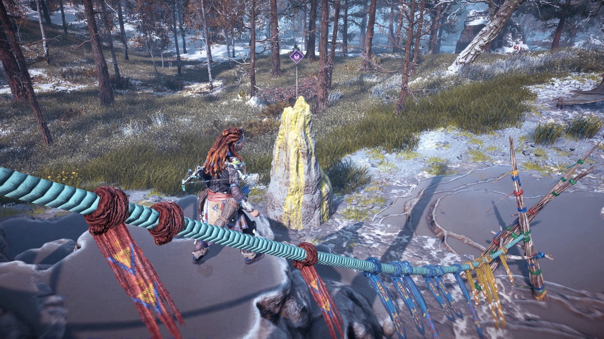 Auf der Karte wird für Sammelsachen generell nicht die genaue Position angezeigt, sondern ein Gebiet mit etwas größerem Radius, in dem sich die Banuk-Figur befindet. Die Figuren stehen generell in luftigen Höhen und sind nur durch eine längere Klettertour erreichbar. Den Anfang und den Weg den Berg hinauf weisen euch bunte Felsenmalereien sowie Klettergriffe. Auch die Figuren könnt ihr mit dem Fokus wie normale Beute sichtbar machen.