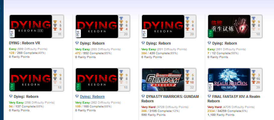 nixmixxer Geschrieben 31. August 2017 Autor Geschrieben 31. August 2017 So, jetzt habe ich hier noch eine Quelle gefunden und passe es gleich noch an. Link: https://blackangel887462.blogspot.de/2017/07/platinum-1035-1036-dying-reborn-de-vita.html --- Auszug / Zitat:: "Zuerst war Dying Reborn eine Doppelplatin, welche ich erspielte, aber inzwischen gibt es einige Versionen mehr. So kann man nun 7 Games spielen. Davon haben 4 Versionen eine Platin und 3 weitere Versionen sind bloß etwa halb so lang, aber haben dafür leider keine Platin. Dies bedeutet im Detail: Platin ist erspielbar in PS4 DE, PS4 US, PS4 JP sowie der Vita Version. Und flotte 100% kann man in PS4 DE, PS4 US und PS4 JP erspielen, aber dafür benötigt man jeweils die VR Brille, denn diese Games sind reine PS VR Versionen." --- Ich kombiniere dann die Aussage noch mit oben stehenden Bildauszug, dann müsste sich ergeben: - Platin ist erspielbar in PS4 DE, PS4 US, PS4 JP sowie der - PS Vita Version DE, US, JP. Und flotte - 100% kann man in PS4 DE, PS4 US und PS4 JP erspielen, aber dafür benötigt man jeweils die VR Brille, denn diese Games sind reine PS VR Versionen - hatte mir heute das US 3 in 1 Packet gekauft, bei der US VR Version wurde leider keine neuen 100 % Trophies angezeigt. --- Ergibt in Summe 3 x Platin für PS4, 3 x Platin für PS Vita und 3 x 100 % für PSVR. --- Edit: Platin kann jeweils bei den PS-Vita Versionen DE, US und JP erspielt werden, aufgrund der bekannten Account restiktion aber nur 1 x Platin möglich. Somit 4-Fach-Platin möglich. So, jetzt habe ich hier noch eine Quelle gefunden und passe es gleich noch an. Link: https://blackangel887462.blogspot.de/2017/07/platinum-1035-1036-dying-reborn-de-vita.html --- Edit 2: Quelle: https://psnprofiles.com/search/games?q=dyng reborn - ist noch eine Vita Version dazu gekommen.