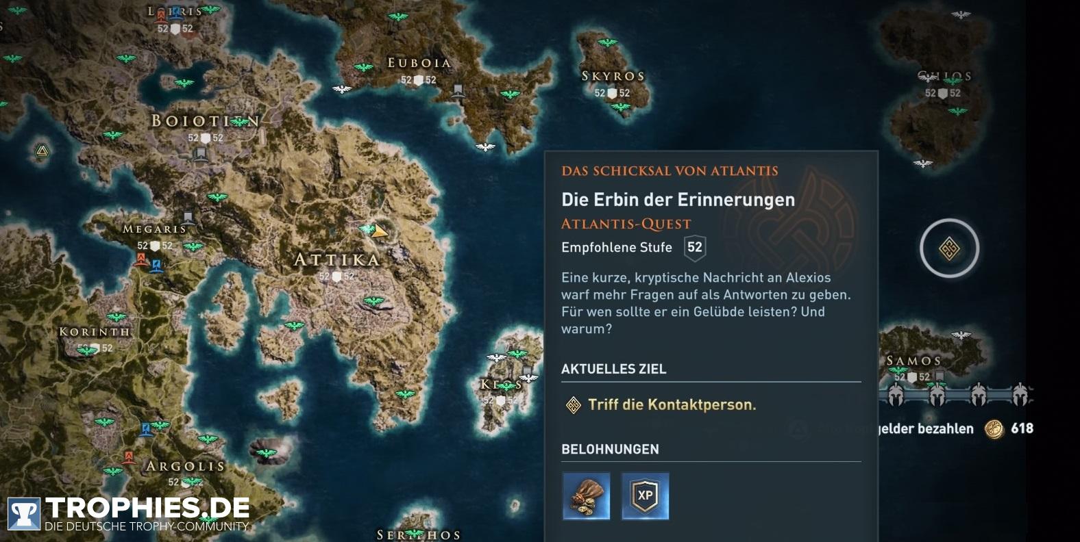 Um die Questreihe abzuschließen, müssen folgende Nebenquests abgeschlossen werden, die man bei Daphnae in der Region "Phokis" startet: