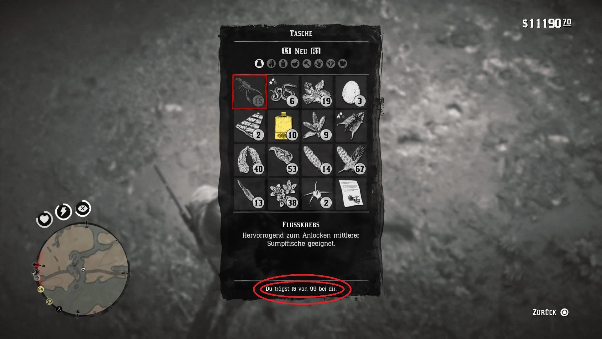 duc-748S Geschrieben 11. November 2018 Geschrieben 11. November 2018 vor 9 Minuten schrieb Vanyar1: Bist du dir sicher, dass diese Krebse auch 99 Mal aufgenommen werden können? Das sind ja Köder, soweit ich weiß, und dafür bekommt man glaube ich keine Tasche. Prüf das mal im Inventar. Und wirf ggf alle Flusskrebse oder wie die heißen weg, selbst wenn das Maximum noch nicht erreicht ist. vor 1 Minute schrieb Heckenschuetzer1: kann nur zeigen, wie es bei mir ist. hab auch sehr viele köder gekauft. die 15 hab ich aber alle grad gesammelt. da sind 3 löcher und man kann gefühlt im 30 sekunden takt da krebse rausholen. daher sinds schon 15, hatte vor 10 minuten noch 0. Also es liegt definitiv an den Ködern. Wusste nicht, dass die als Köder zählen und habe davon 99. Kann aber keinen wegwerfen, wie bekomme ich denn einen auf andere Art los? Zitieren