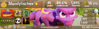 Eigentlich das Beste Spyro, wenn es nicht diese groben Gameplay-Patzer hätte. Oft wusste man nicht, wie man da jetzt hinkommen sollte, nur um später zu erfahren, das es mit Spyro auch gar nicht möglich war. Zudem haben sie die tollen Fluglevel versaut, die man jetzt nach Schema F fliegen soll, aber rückwärts bitte, sonst schafft man die strenge Zeitvorgabe nicht (erster Fluglevel) Die neuen Charaktäre (Ideen) steuerten sich von Sparx (wie Asteroid/Defender) hervorragend, Känguru (beschissen), Affe (zäh), Raketenvogel (super :biggrin5:) bis hin zu Skateboard Spyro (Tony Hawk) alptraumhaft!