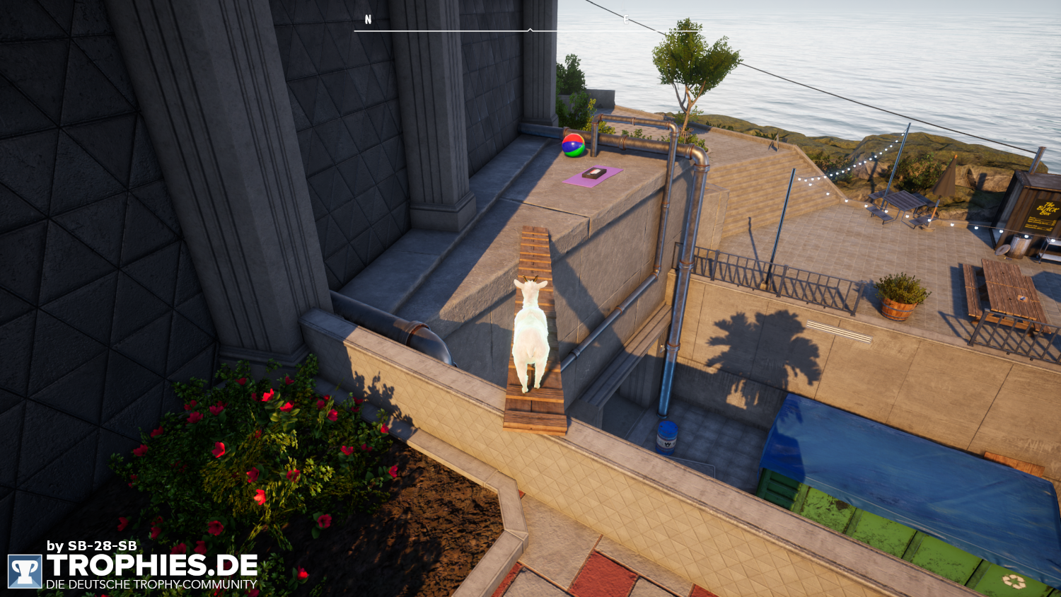 mit dem Tor, damit sich eine Kette löst. Daraufhin erscheint eine Zwischensequenz, in der man sieht, wie ein Thron im oberen Teil der Ziegenburg erscheint. Zu diesem geht man nun hin, springt rauf die Sitzfläche und erhält die Trophäe.