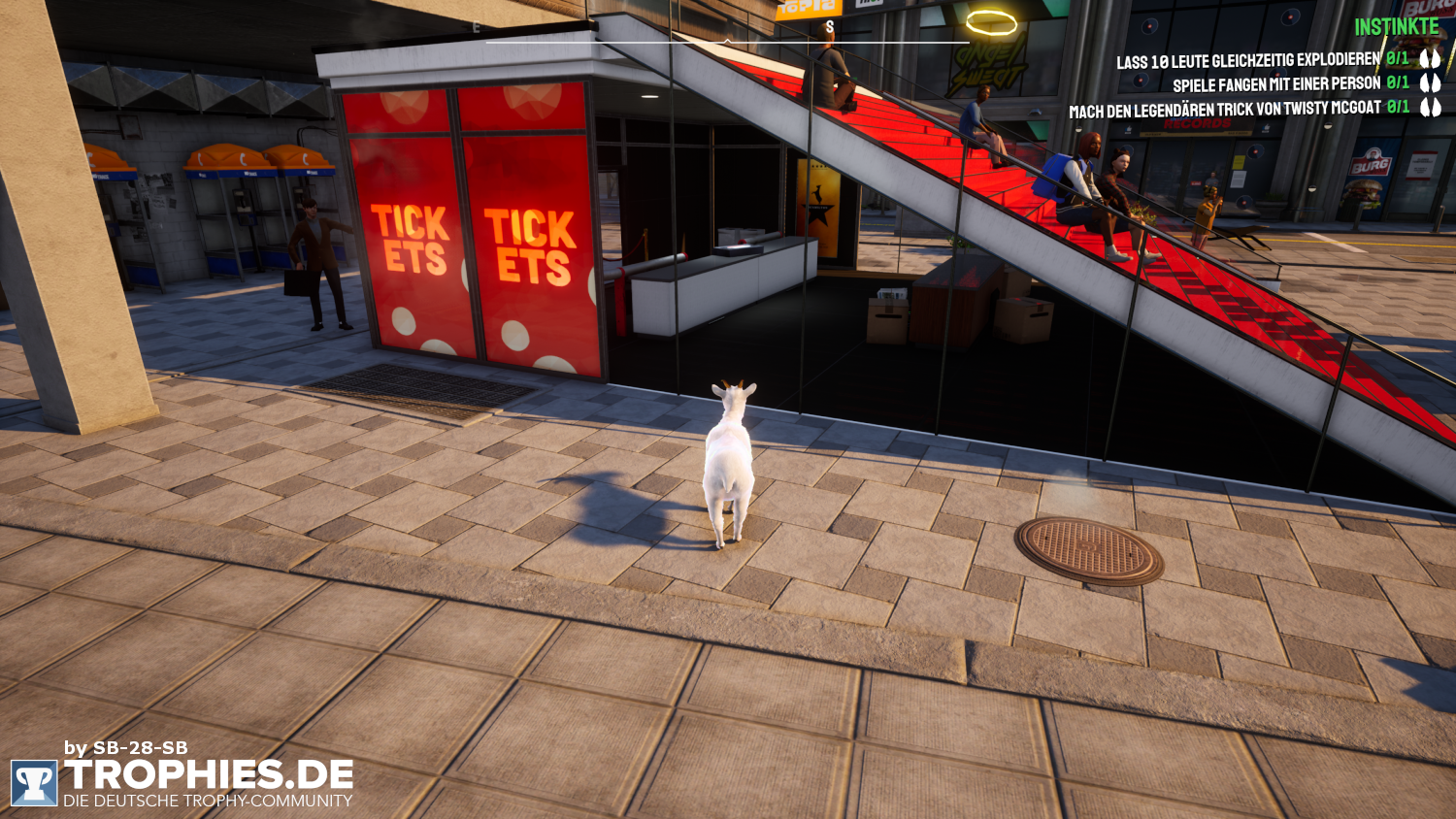 Um diese Trophäe zu erhalten, muss man den dubiosen Händler gefunden haben. Dieser befindet sich im Osten der Region "Goatenburg" in der Nähe des Minispiels "Kopfklatschen". Hinter dem großen Gebäude an der Wasserkante befindet sich unterhalb des Geländers eine kleine Plattform mit zwei Fackeln. Springt man auf diese Plattform, befindet man sich für einer verschlossenen Tür. Um diese zu öffnen, muss man das Emote-Rad öffnen, indem man