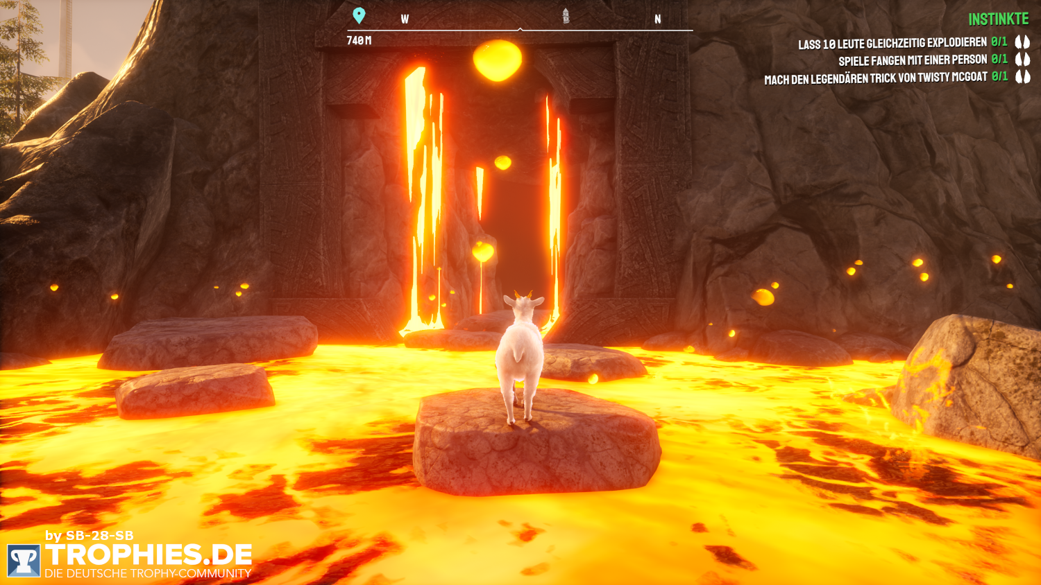 drückt. Der Fels wird daraufhin von einem Heiligenschein weggetragen. Jetzt läuft man nach unten in die Höhle zu Capra Erectus und erhält die Trophäe.