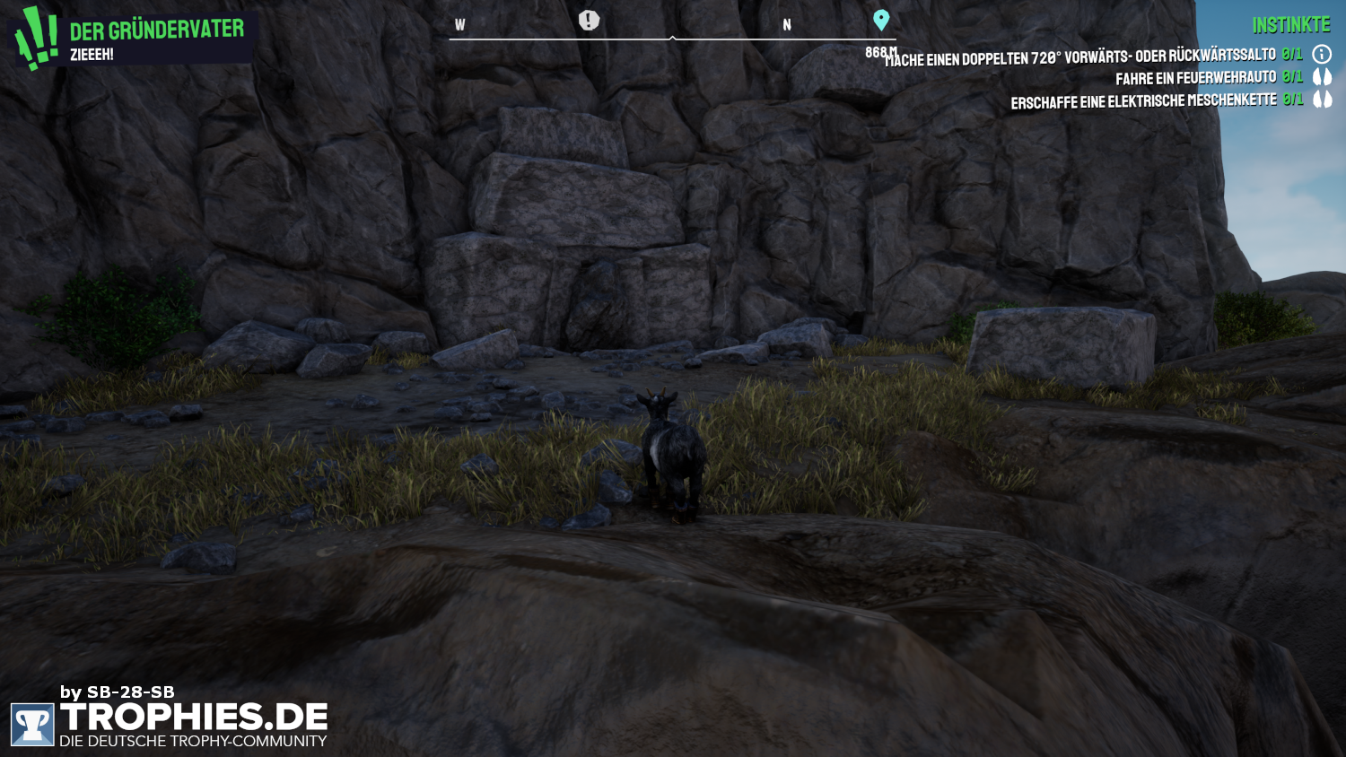 Damit man diese Trophäe erhält, muss man zu Capra Erectus geworden sein. Dafür begibt man sich auf die kleine "Libertarian-Insel" ganz im Nordwesten. Unterhalb der "Statue of Libertarian", in südöstlicher Richtung, befindet sich ein Höhleneingang, der mit einem Felsen blockiert ist. Steht man vor diesem Felsen, muss man diesen anblöken, indem man