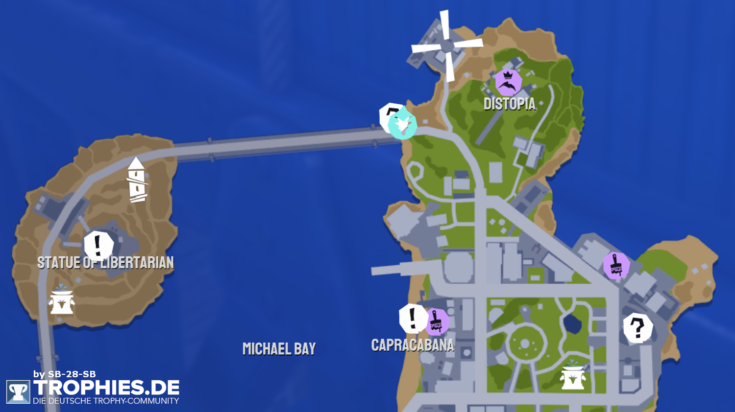 Zum Erhalt dieser Trophäe muss man von allen Rampen im Spiel gesprungen sein. Insgesamt gibt es 29 Stück, die überall auf der Karte verteilt sind. Unter "