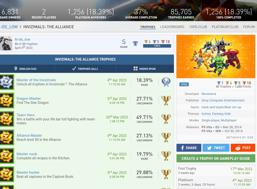 MarcelGK Geschrieben 4. April 2023 Geschrieben 4. April 2023 vor 17 Minuten schrieb AiMania: Fertigmeldung: Invizimals The Alliance (Neues Spiel) Folgende Event-Trophäen möchte ich fertig melden: N02 Komplettierung von 5% bis 25% N04 SG zwischen 1 und 4 N08 Spielzeit zwischen 20 und 40 Stunden C01 Spiel bewertet Nachweise: Unsichtbaren Inhalt anzeigen Endlich! Wann Jedi Fallen Order? Zitieren