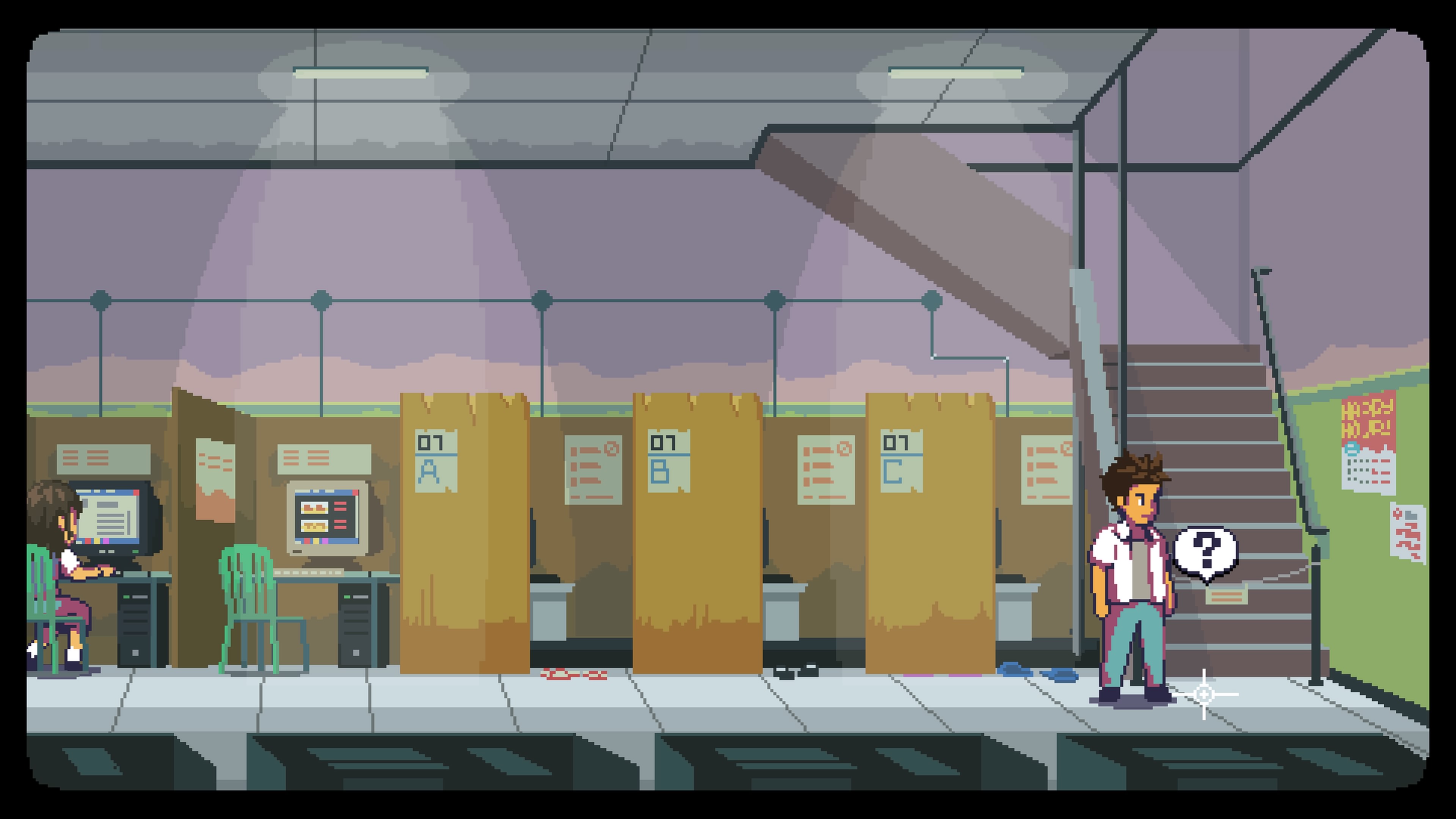 Hat man die 14 Tickets, begibt man sich zu dem Net-Cafe, vor dem eine Gruppe Kinder steht. Eines der Kinder beschwert sich, dass es immer den Buchstaben A bekommt und es lieber 14 Ticket für die Spielhalle haben wollte. Also gibt man dem Kind die Tickets und so erhält man den Buchstaben A.