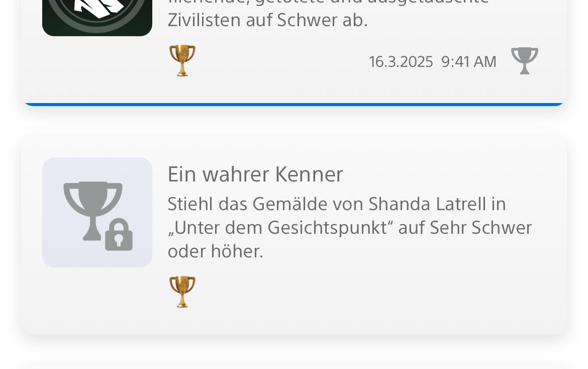 RubenRodriguez84 Geschrieben 17. April Geschrieben 17. April Hallo zusammen, ich suche noch Spieler für die Trophy „Wahrer Kenner“ sowie die beiden „Hoch Hinaus“ Trophäen. gerne einfach anschreiben PSN RubenRodriguez84 Zitieren